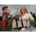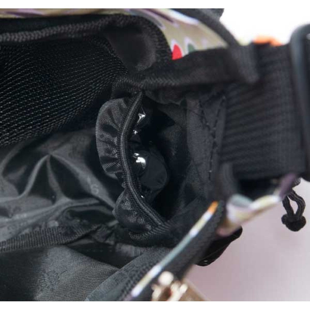 - Einzigartiges Riemen- und Befestigungssystem, mit dem die Wickeltasche sauber und bequem am Lenker eines Doppelkinderwagens befestigt werden kann