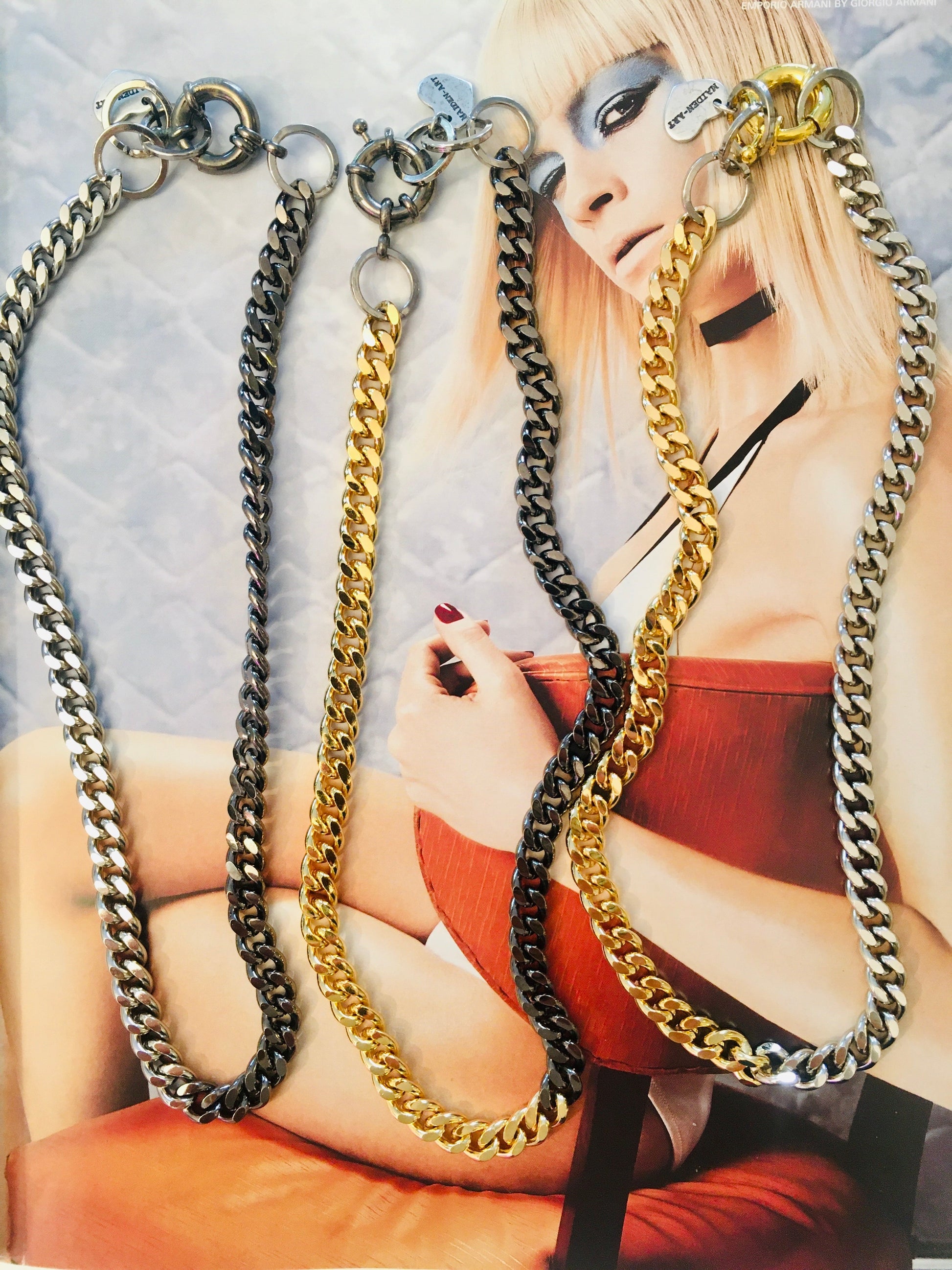 Zweifarbige Panzerkette in 3 Stilen. Bitte wählen Sie Ihren Favoriten: Gold und Rotguss, Silber und Gold oder Silber und Rotguss.