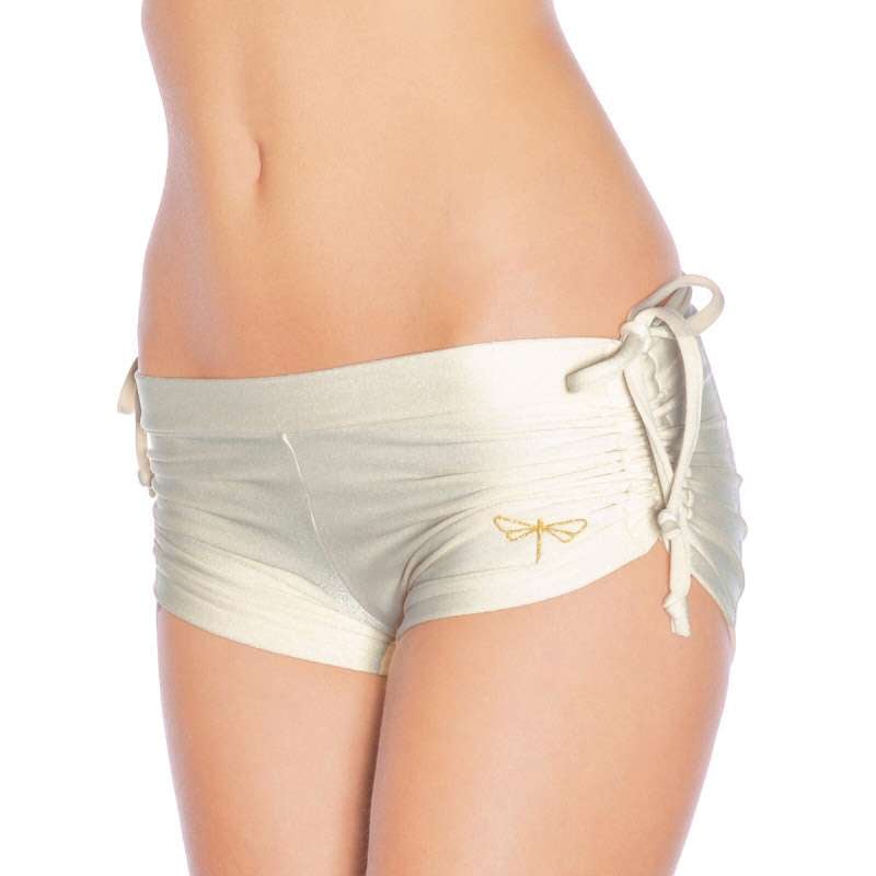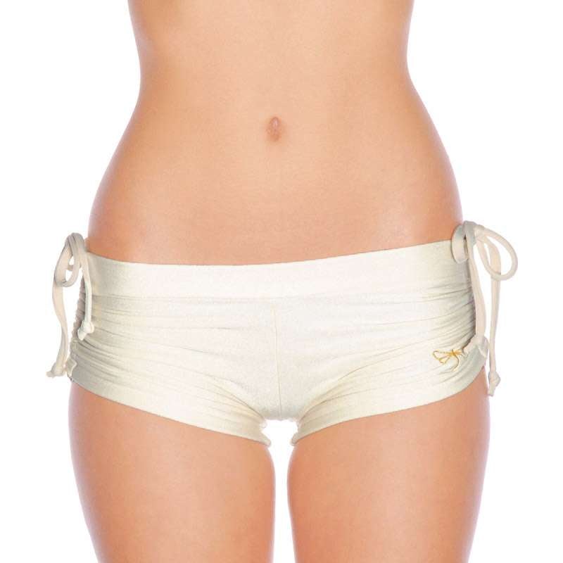Bequeme Shorts mit Kordelzug an den Seiten zur Regulierung der Länge. Es liegt an Ihnen, ob Sie sie mehr zu Shorts oder mehr zu Hosen machen. Michelle Shorts haben keinen Bund und schneiden daher nirgendwo ein.