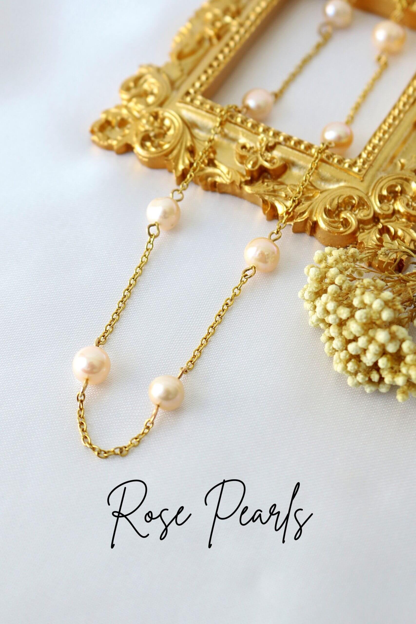Elegantes und minimalistisches Perlenhalsband, erhältlich in zwei Perlentönen (Rose Pearl und Cream Pearl).