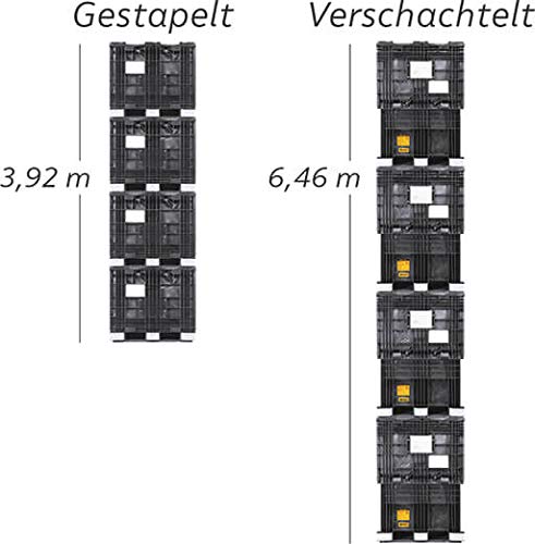 - MODULAR: Stapel und Verschachtelbar = Platzsparend bei Lagerung! Für z.B.: Agrarprodukte, Bauteile, Kunststoffpellets, Streusalz uvm.