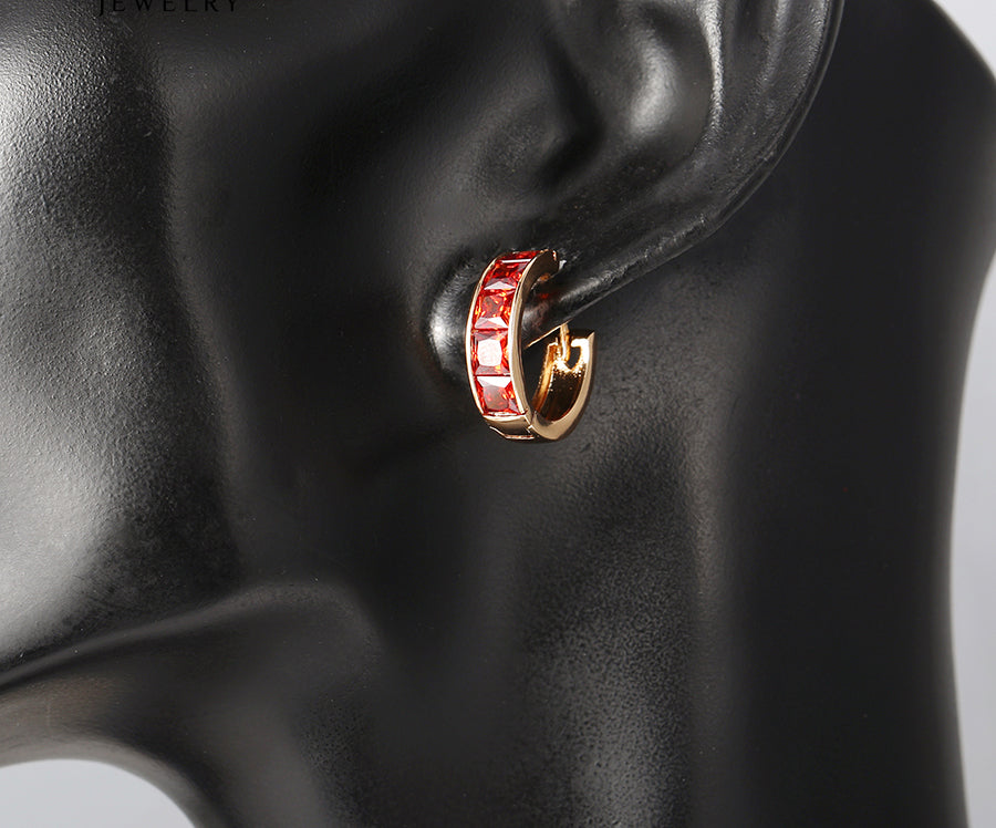 Emilys Gems Kreolen sind aus Edelstahl mit 18K Gold vergoldet. Drei Farben (Weiß Kristall, Rot oder Bunt) Jeder Ohrring wiegt 3g und ist 1,7x1,7cm (Rund) Geliefert in einer simplen Plastikhülle! Jede Bestellung enthält 1 Paar Ohrringe!