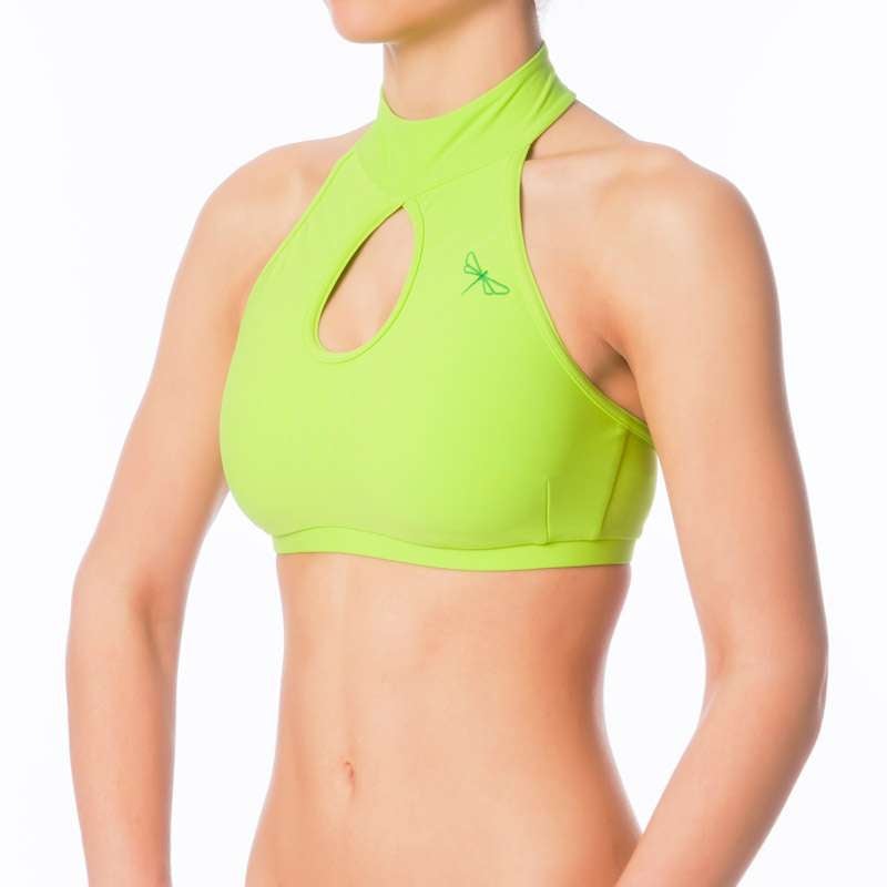Terri ist ein bequemer Sport-BH mit Stehkragen für Pole Dance, Fitness und Yoga. Du stehst eher auf klassische Sport-BHs? Raus und Neues ausprobieren! In diesem rückenfreien Schlüsselloch-Top werden Sie absolut umwerfend aussehen. Inspiriert und benannt nach Terri Fierce (Doppelweltmeisterin im Pole-Sport), die die allererste Person war, die es getestet und getragen hat. Danke, Terri! Der Nackenverschluss mit 3 kleinen Metallnieten ist 100% zuverlässig. Wie alle Sport-BHs von Dragonfly ist auch Terri Neckholder-Top mit Doppelfront. Auf der Vorderseite befindet sich offensichtlich eine dezente Dragonfly-Logo-Stickerei. Das Symbol für hochwertige Poledance-Kleidung.