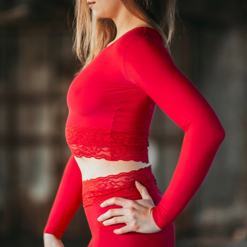 Crop-Top "Pavi" mit langen Ärmeln und Spitze