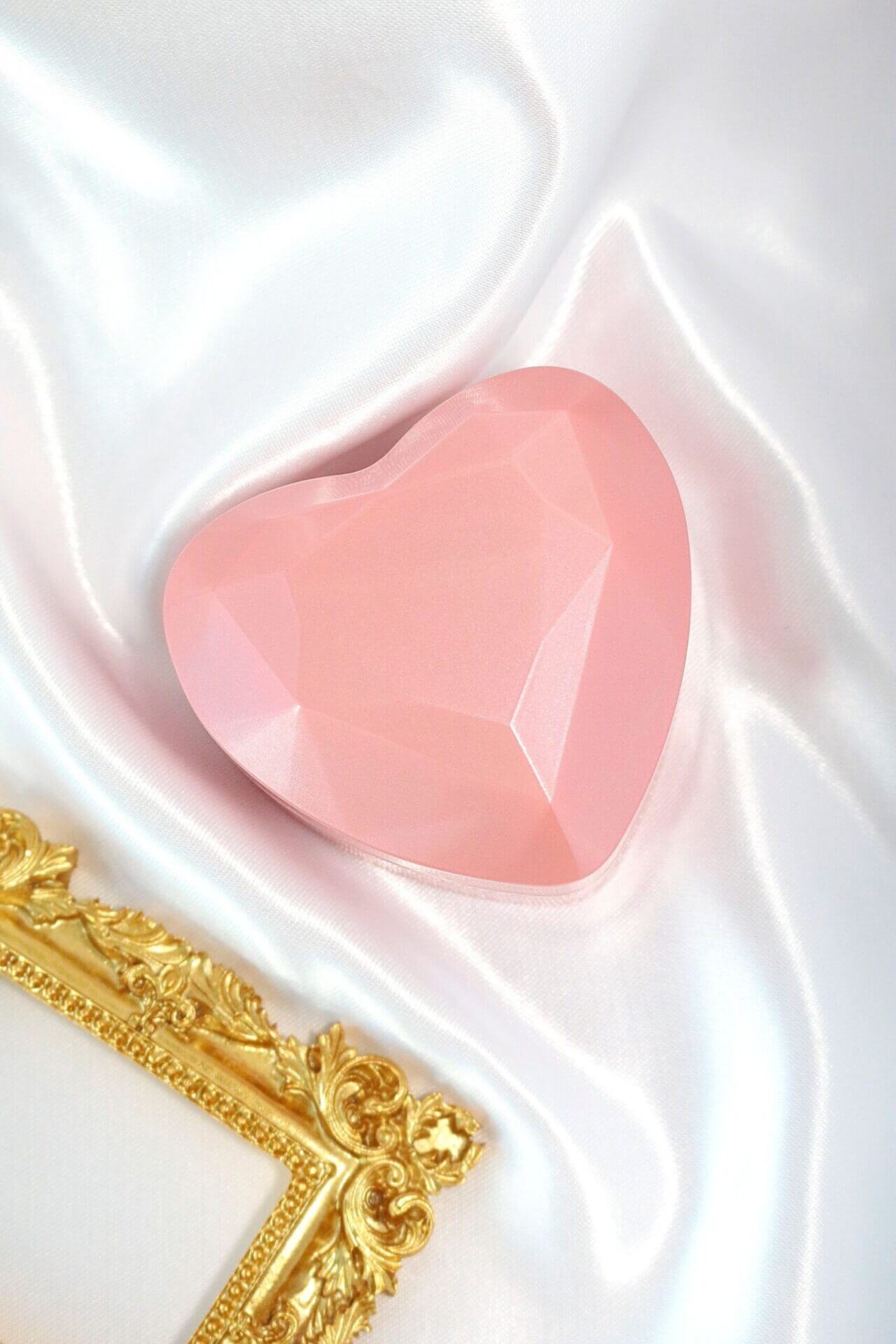 Schöne und liebliche rosa Ringbox in Herzform mit LED-Licht, das genau hervorhebt, wo sich der Ring darin befindet.