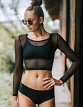 Transparentes Crop-Top mit langen Ärmeln & hoch tailliert