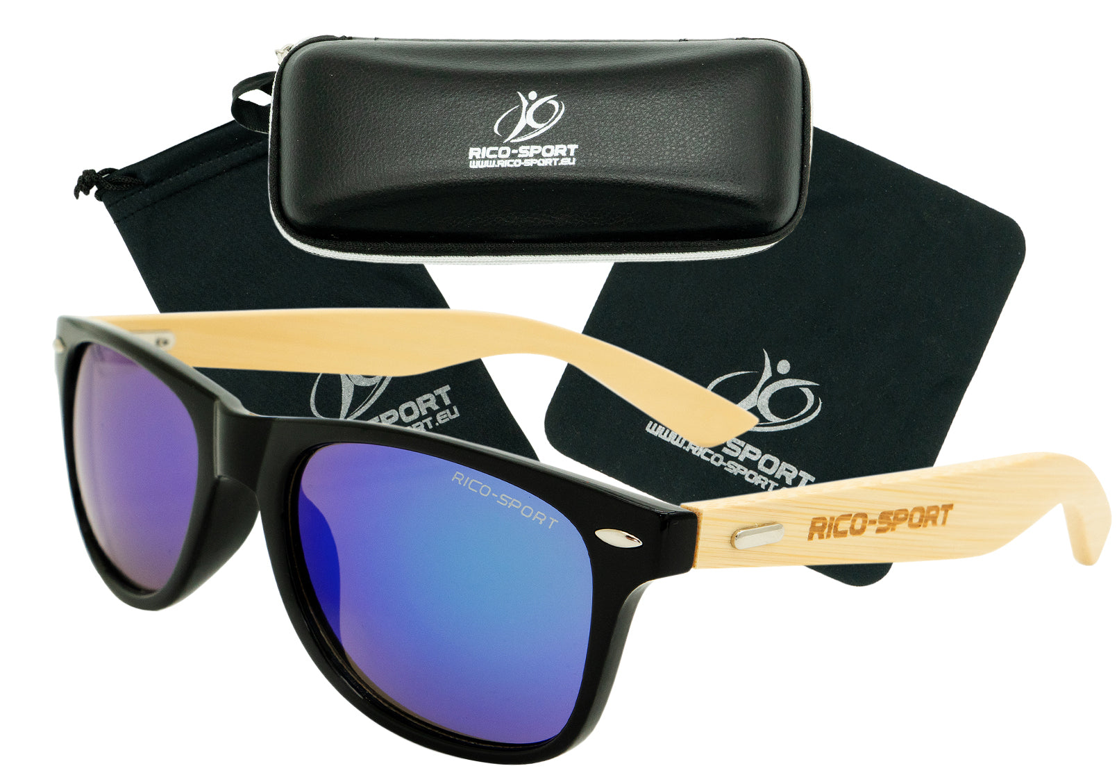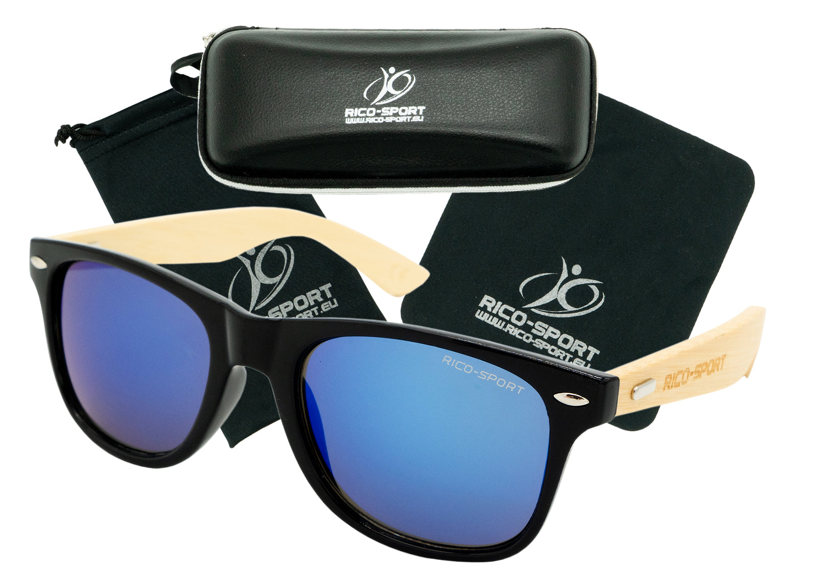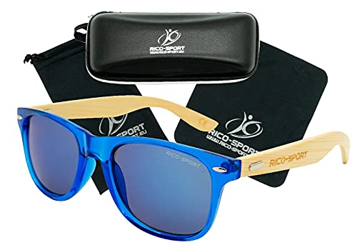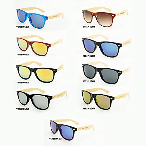 Sonnenbrille Set Unisex | UV400 verspiegelt mit Etui, Mikrofaser Beutel + Tuch und nachhaltigen Bambus Bügeln | 9 Varianten