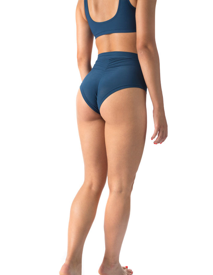 Lola scrunch butt pole shorts are every pole dancer's dream. The high waisted cut is based on the Betty pole shorts, which have been an absolute bestseller for a long time. A larger cutout in the back designed for pole dancing does not take away from the shorts’ functionality and provides enough coverage even for extreme tricks. Lola pole shorts have a double lining in the crotch area. The scrunch butt looks extremely sexy and it flatters every body type. It's just up to you how high you can pull them up. Dragonfly embroidery on the front highlights the perfect design of premium pole wear.