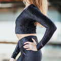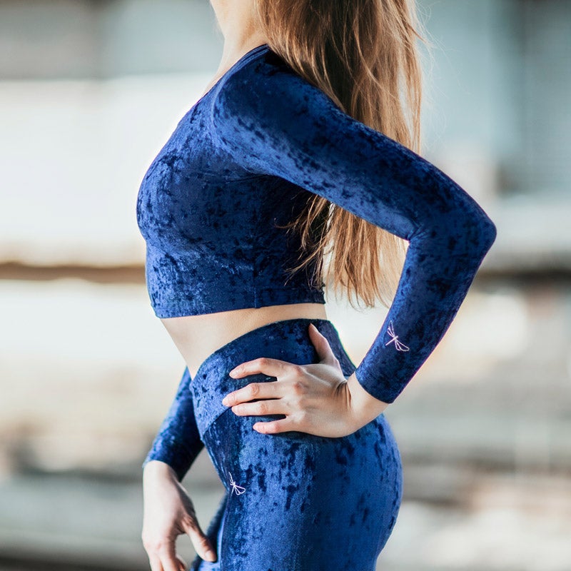 Ultra-feminines Crop-Top aus Samt. Entworfen, um jeder Größe zu schmeicheln. Legen Sie es über Ihren Lieblingssport-BH von Dragonfly. Wir lieben es mit hoch taillierten Adriana-Leggings oder hoch taillierten Betty-Shorts. Dieses taillierte Crop-Top eignet sich für das Studio und für die Straße. Super dehnbarer, leichter Stoff ist weich und bequem.