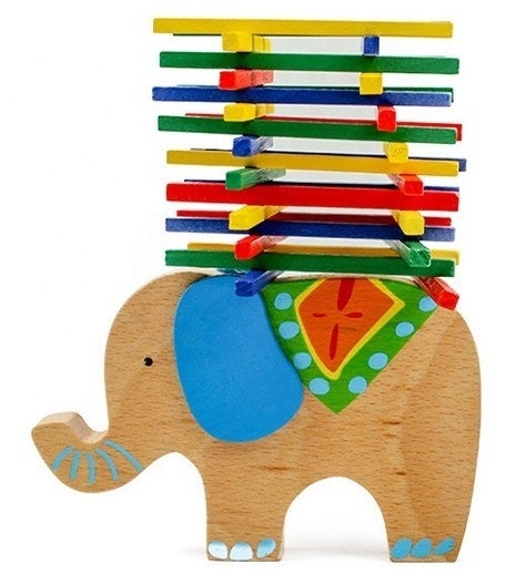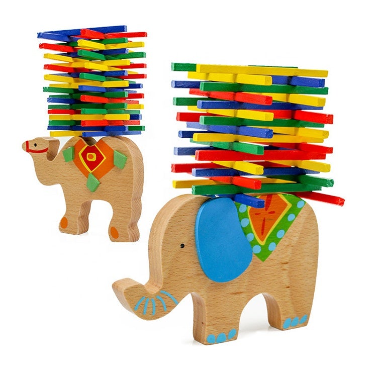 Hölzernes Balance Spielzeug für Kinder | Kamel oder Elefant | mit praktischem Jutesack